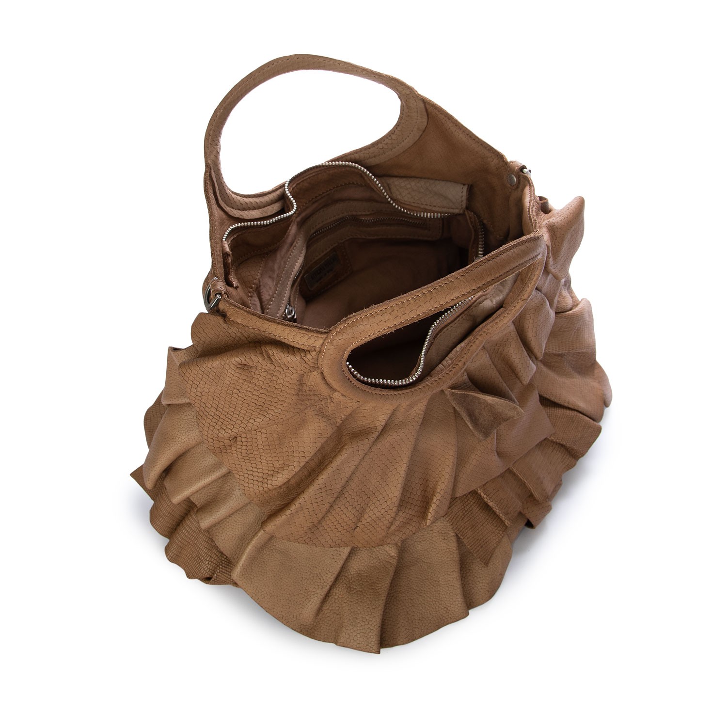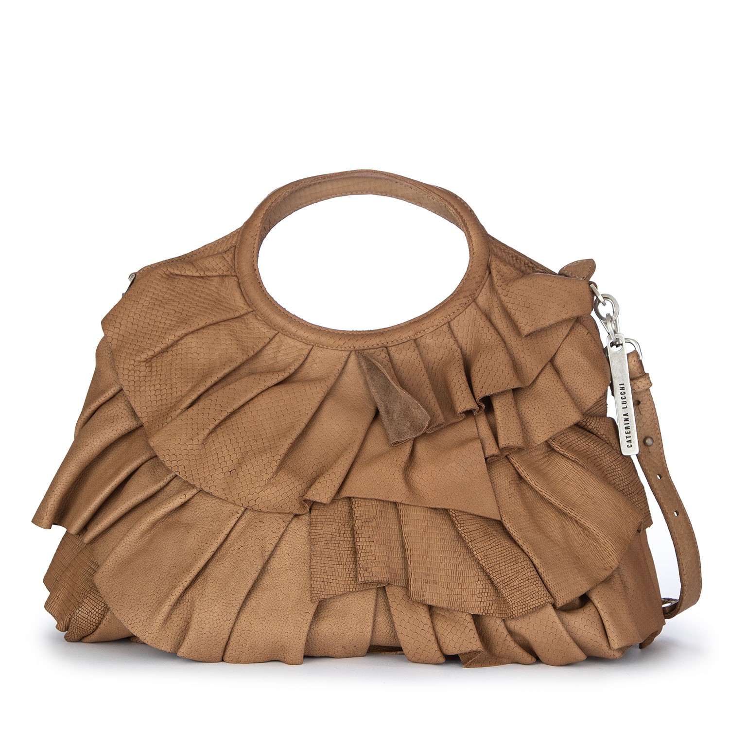 Caterina Lucchi Handtasche im modernen und raffinierten Stil, mit weichem Design, Rüschendetails und vielseitiger Tragemöglichkeit. Aus strukturiertem Leder gefertigt, bietet sie Volumen und Charakter. Sorgfältige Handarbeit. Made in Italy.