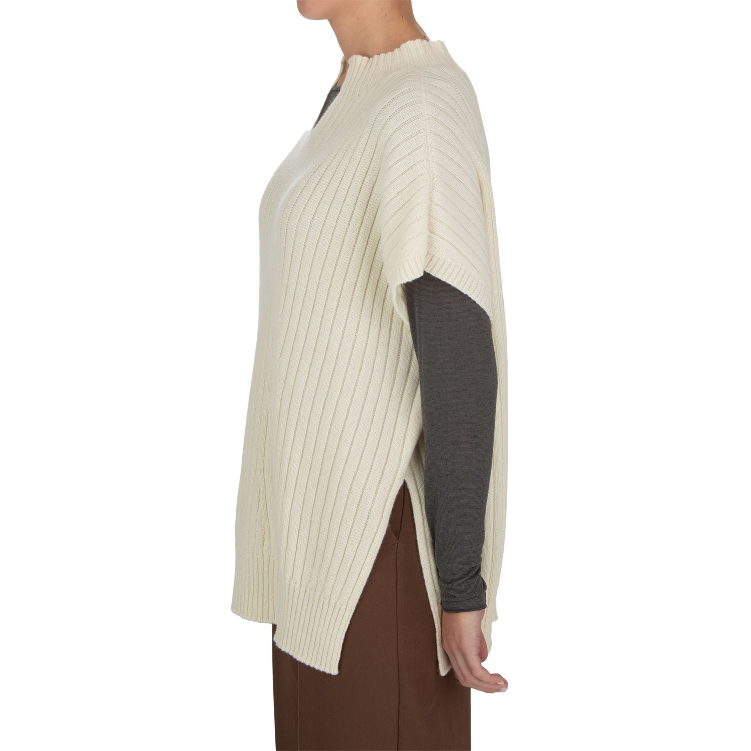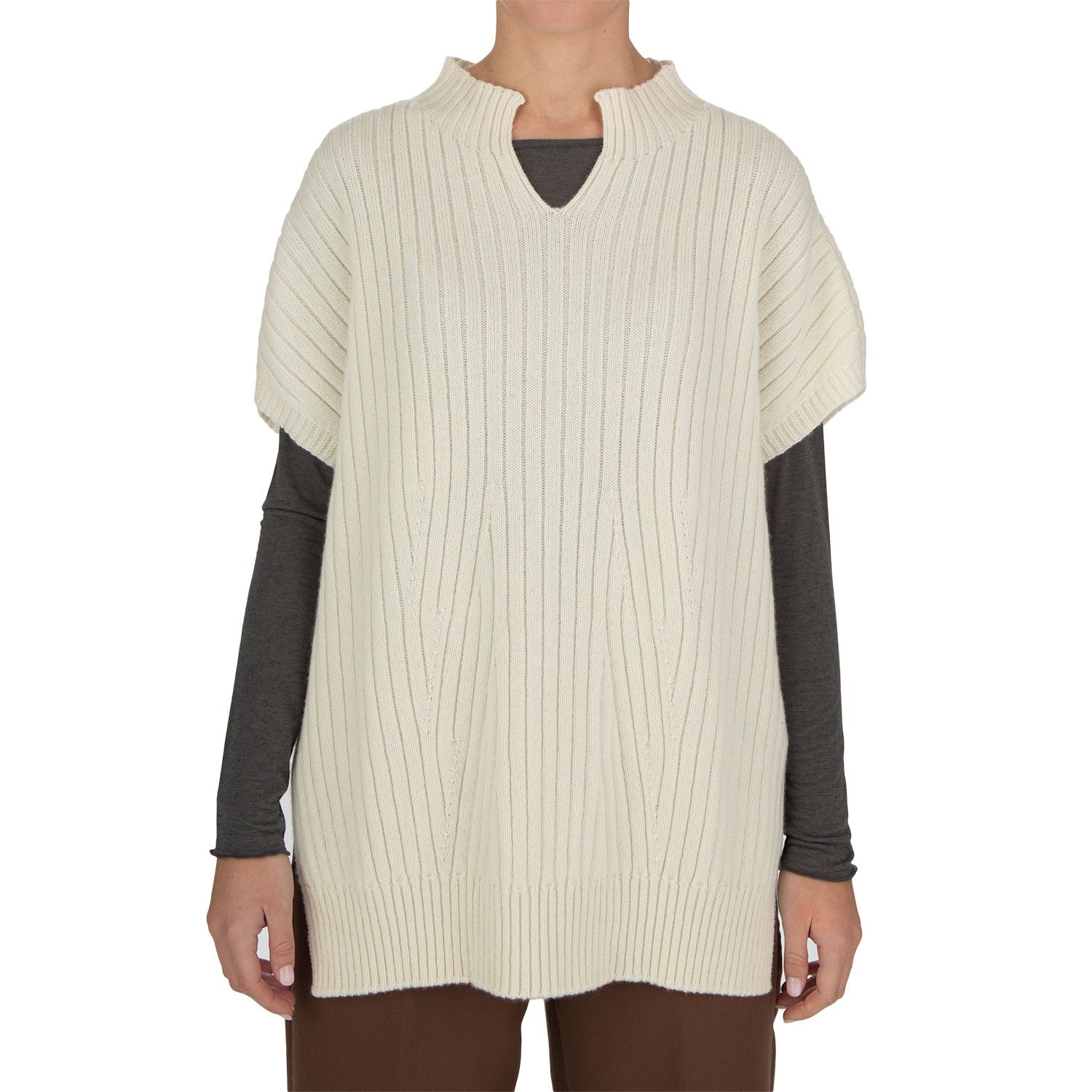 RIVIERA CASHMERE | PONCHO RIPPSTRICKMUSTER CREMEWEISS