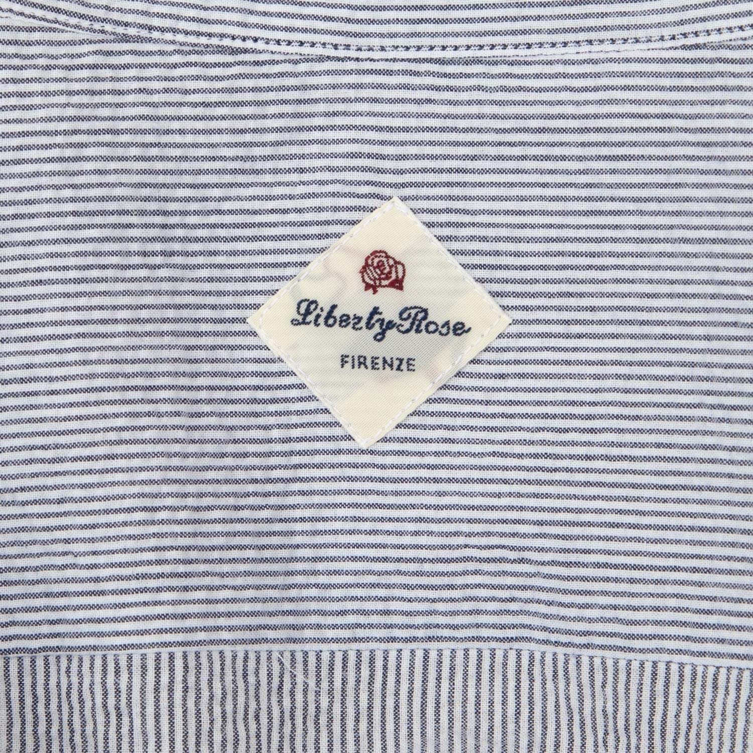 Herrenhemd, Liberty Rose. Klassischer Stil, aus gestreiftem Baumwollstoff in Weiß und Blau, langärmelig. Maßgeschneiderter Schnitt mit Umlegekragen. Vielseitig und raffiniert, ein wesentliches Kleidungsstück im Kleiderschrank. Made in Italy.