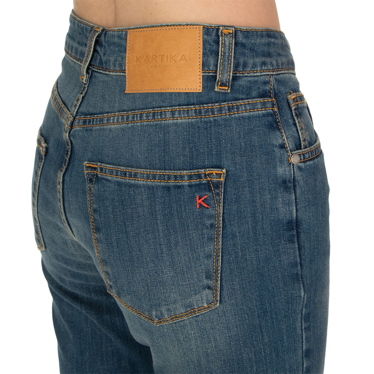 Kartika Hose im modernen und lässigen Stil, mit schmaler Passform, regulärer Taille, Gürtelschlaufen, fünf Taschen und Frontverschluss. Aus Denim gefertigt, mit Liebe zum Detail verarbeitet für einen vielseitigen Alltagslook. Made in Italy.