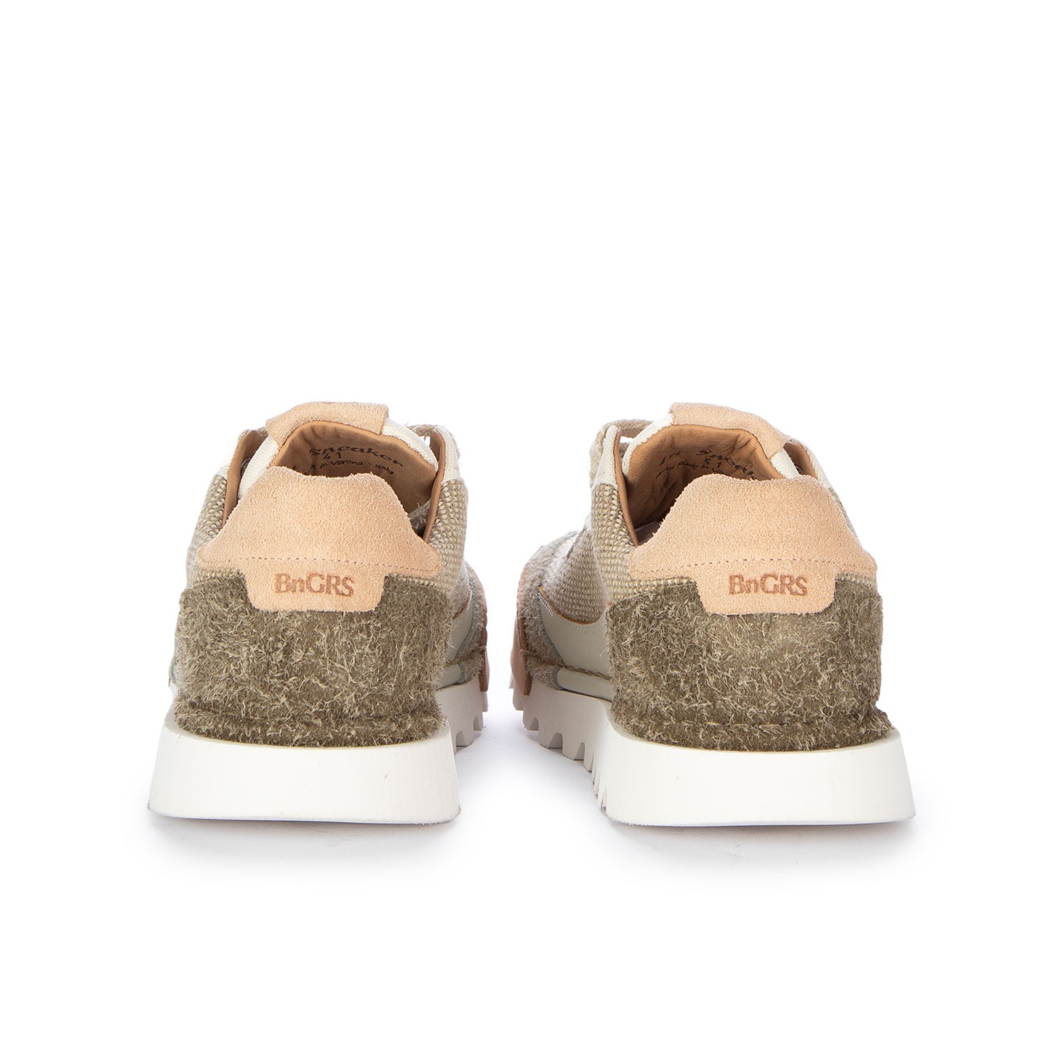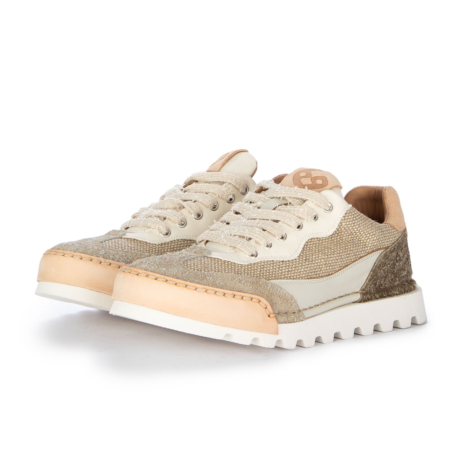 Sneaker von Bng Real Shoes im modernen, lässigen Stil, geprägt von klaren Linien und materiellen Details. Aus Canvas und Leder mit Suede-Einsätzen, Frontschnürung und natürlichen Finishes. Profilierte Gummisohle für Komfort und Stabilität. Handmade in Italy.