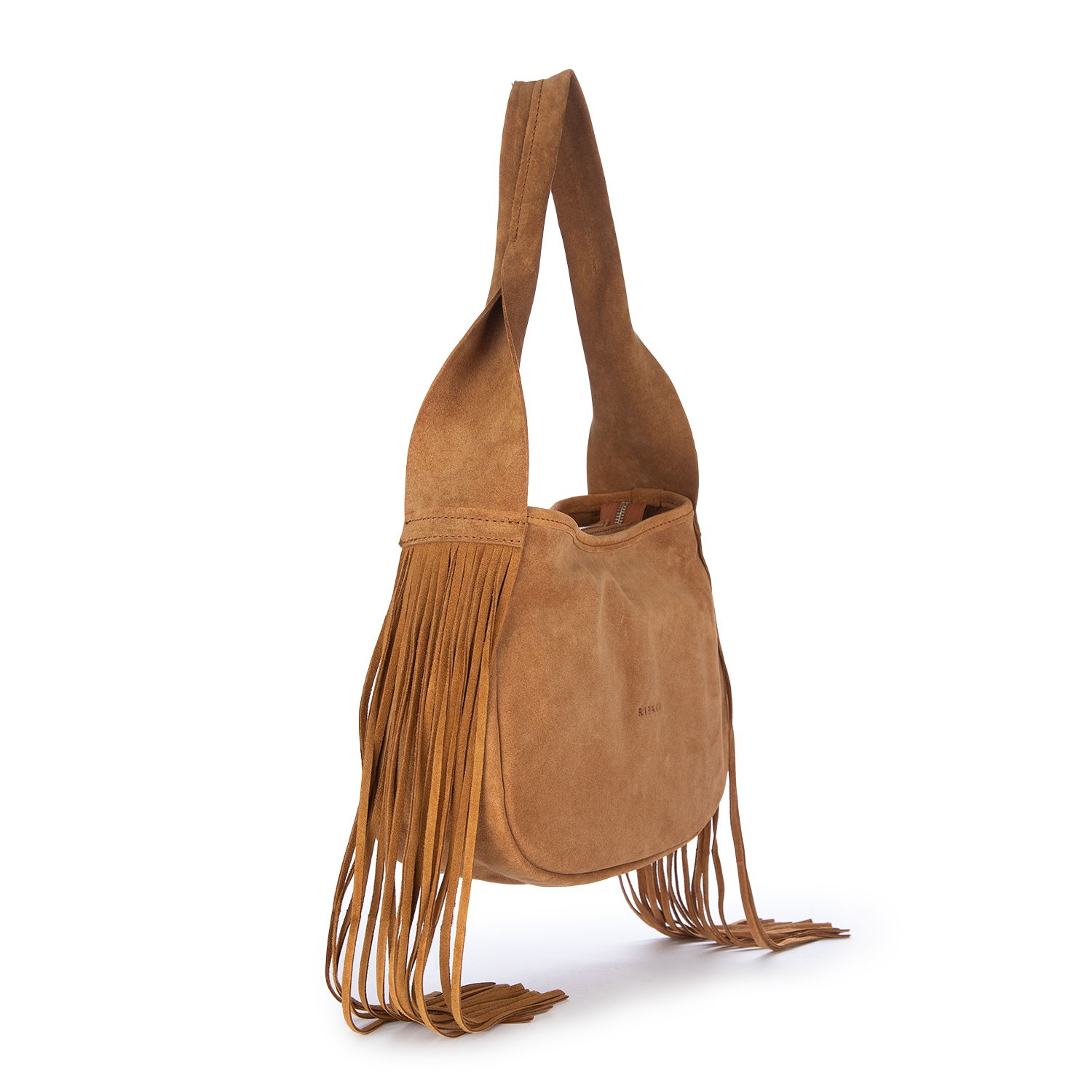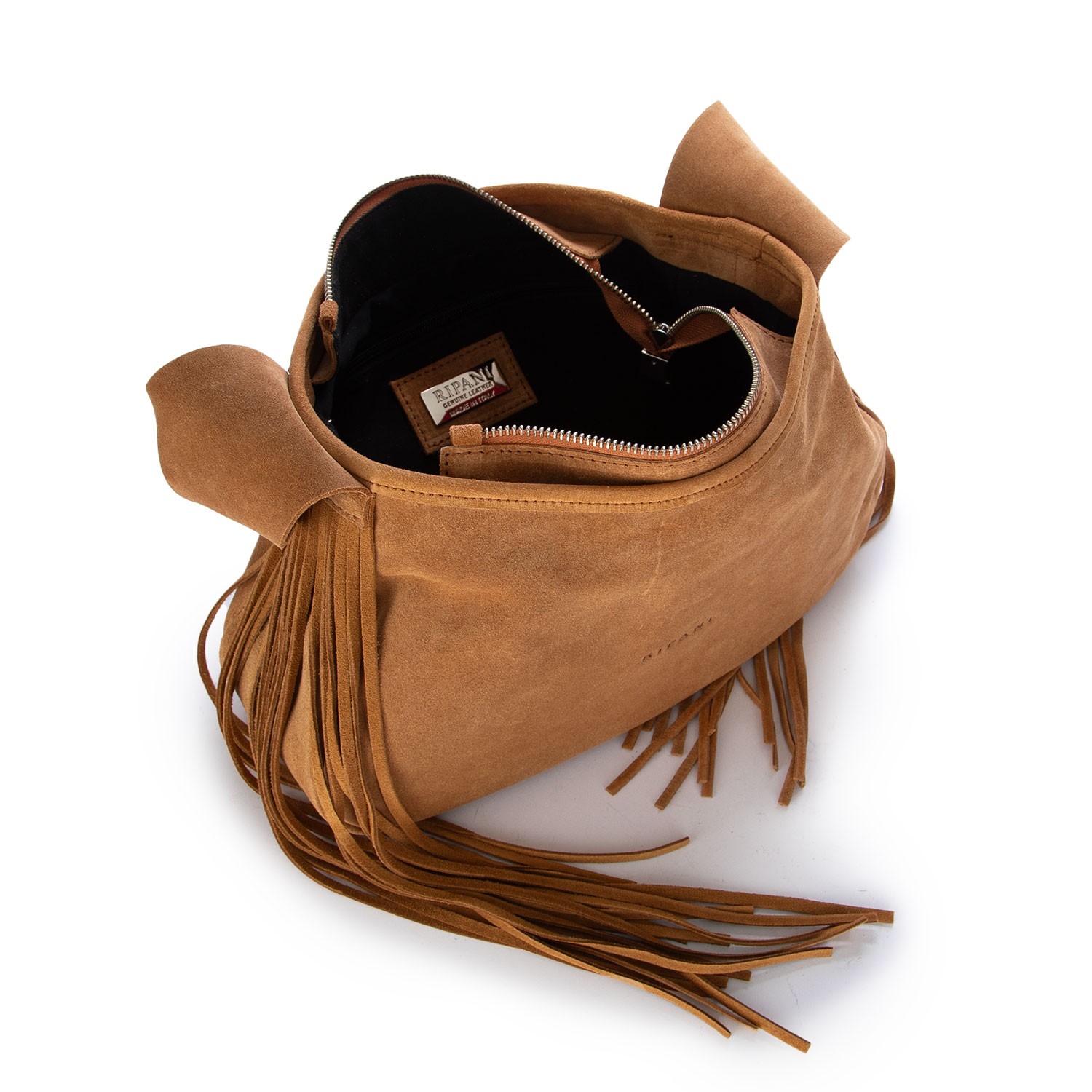 Ripani shoulder bag with a contemporary and refined style, defined by soft lines and fringe details. Featuring a wide handle and zip closure. Crafted in soft suede, artisanally made in Italy.