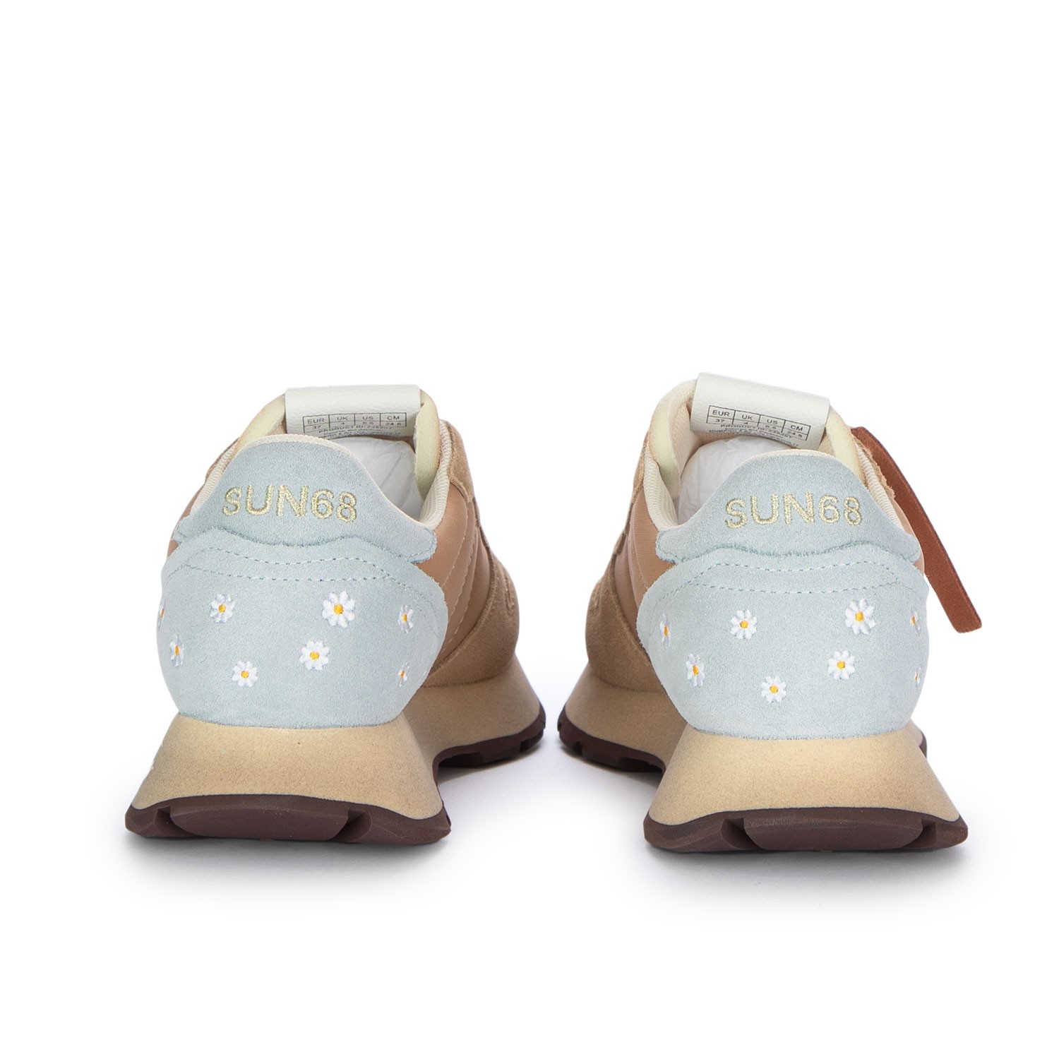 Sun68 sneakers with a contemporary style and vintage inspiration, featuring a running silhouette and floral embroidered details on the heel. Equipped with extra laces, they are made of suede and technical fabric with refined construction and a rubber sole.