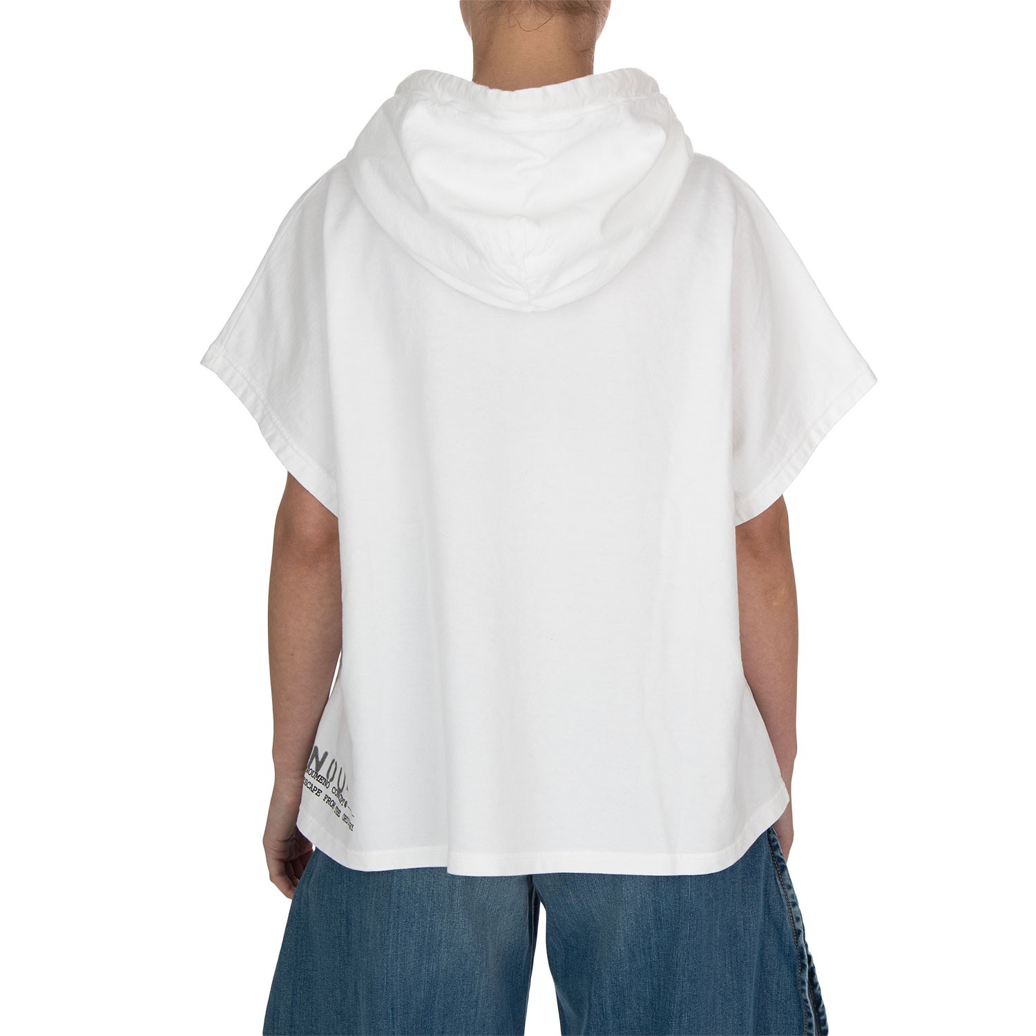 Noumeno Concept hooded T-shirt with a contemporary, relaxed style, featuring a loose fit with hood and front pocket. Made from lightweight cotton, with clean construction and printed details. Made in Italy.