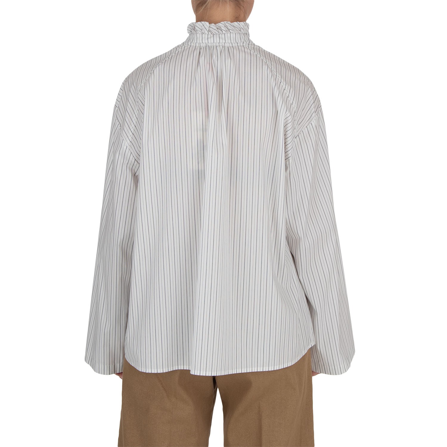 SEMICOUTURE | CAMICIA OVER RIGHE BIANCO GRIGIO