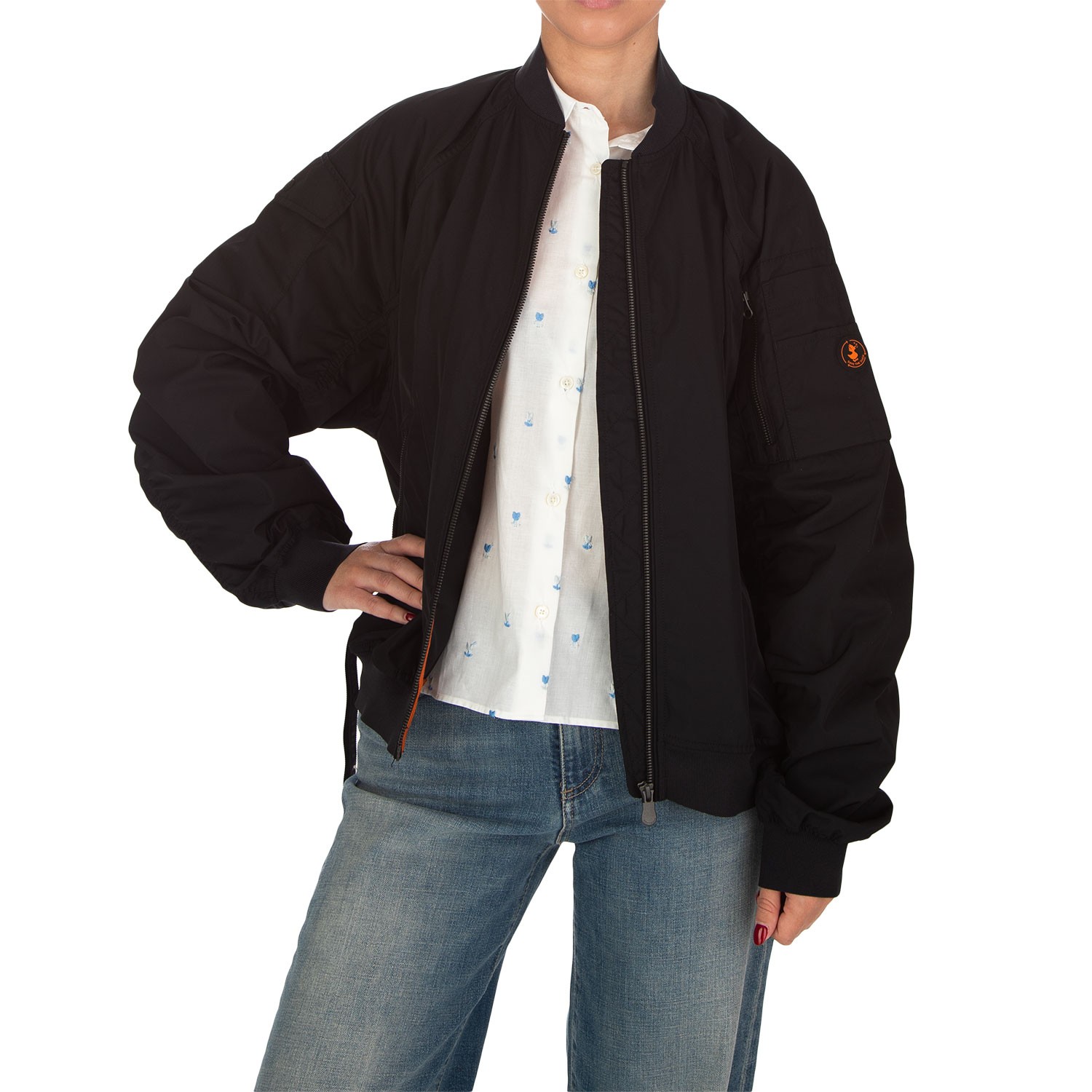 Bomber Save The Duck dallo stile street e contemporaneo, caratterizzato da fit oversize, zip doppio cursore e tasche utility anche sulle maniche. Realizzato in tessuto tecnico leggero e sostenibile, presenta lavorazione curata e design animal free.