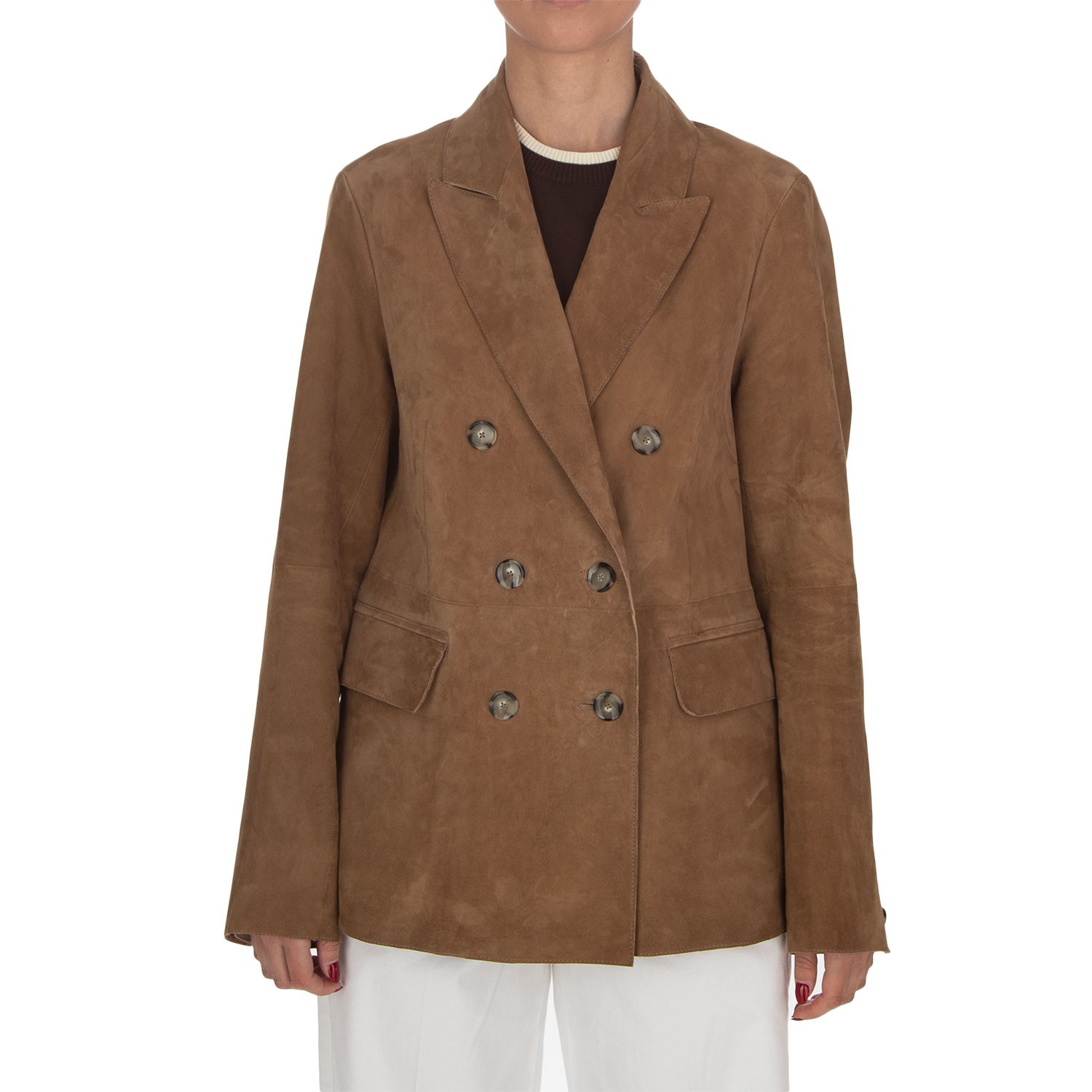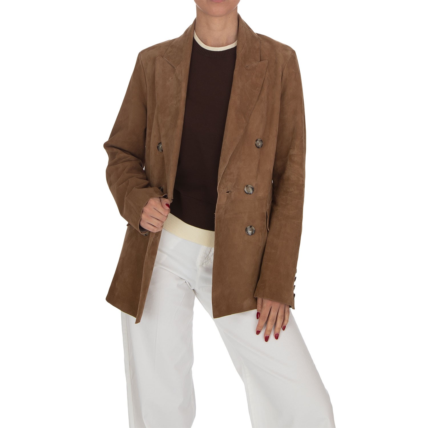 THE JACKIE LEATHERS | GIACCA BLAZER TIAKI SUEDE MARRONE CHIARO