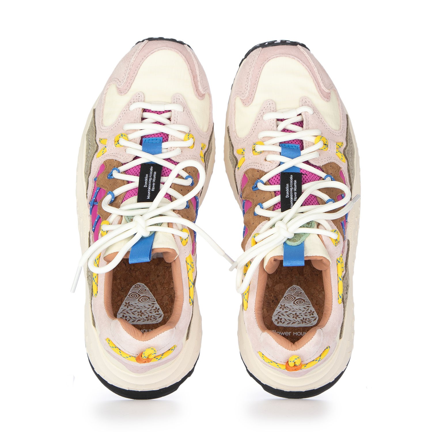 Sneakers Flower Mountain dallo stile casual e contemporaneo, caratterizzate da design dinamico e dettagli multicolor. Dotate di lacci tecnici, soletta in sughero e fondo leggero e stabile, sono realizzate in suede e tessuto, con lavorazione accurata e ispirazione giapponese.